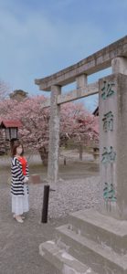 松前神社の前でもパシャリ📷